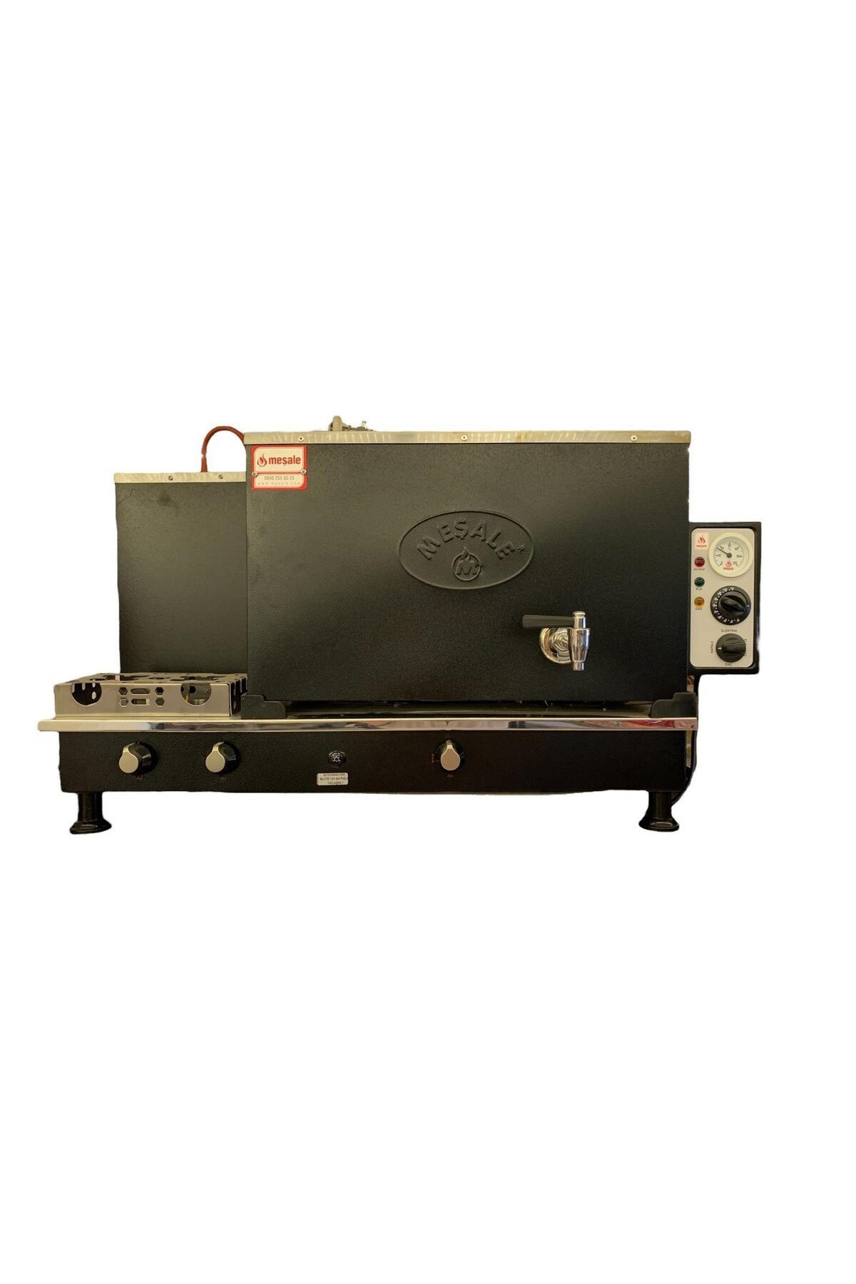 Meşale 3 Demlikli Siyah Elektrik + Gazlı Full Otomatik Çay Kazanı, şık tasarımı ve üstün performansıyla işletmelerin çay servisinde mükemmel sonuçlar sunar. Siyah kaplama gövdesi, modern ve estetik bir görünüm sağlarken, paslanmaz çelik malzemesi uzun ömürlü ve hijyenik bir kullanım sunar.