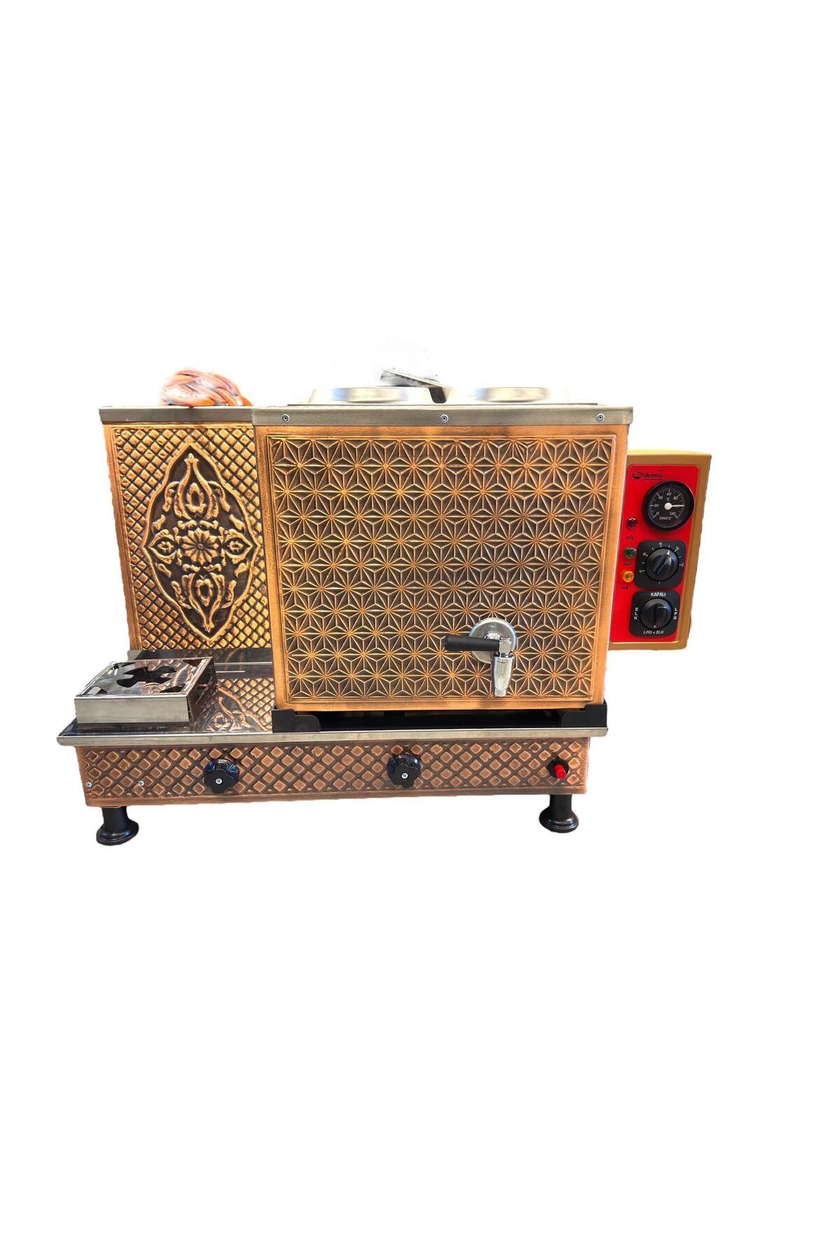 Demsu 2 Demlikli Antik Bakır Yıldız Desen Elektrik + Gazlı Full Otomatik Çay Kazanı, işletmenizin çay servisini en yüksek standartlarda yapmanızı sağlar. Verimli çalışması sayesinde işletmenizin çay hazırlık hızını artırır ve her zaman taze çay sunmanıza olanak tanır.