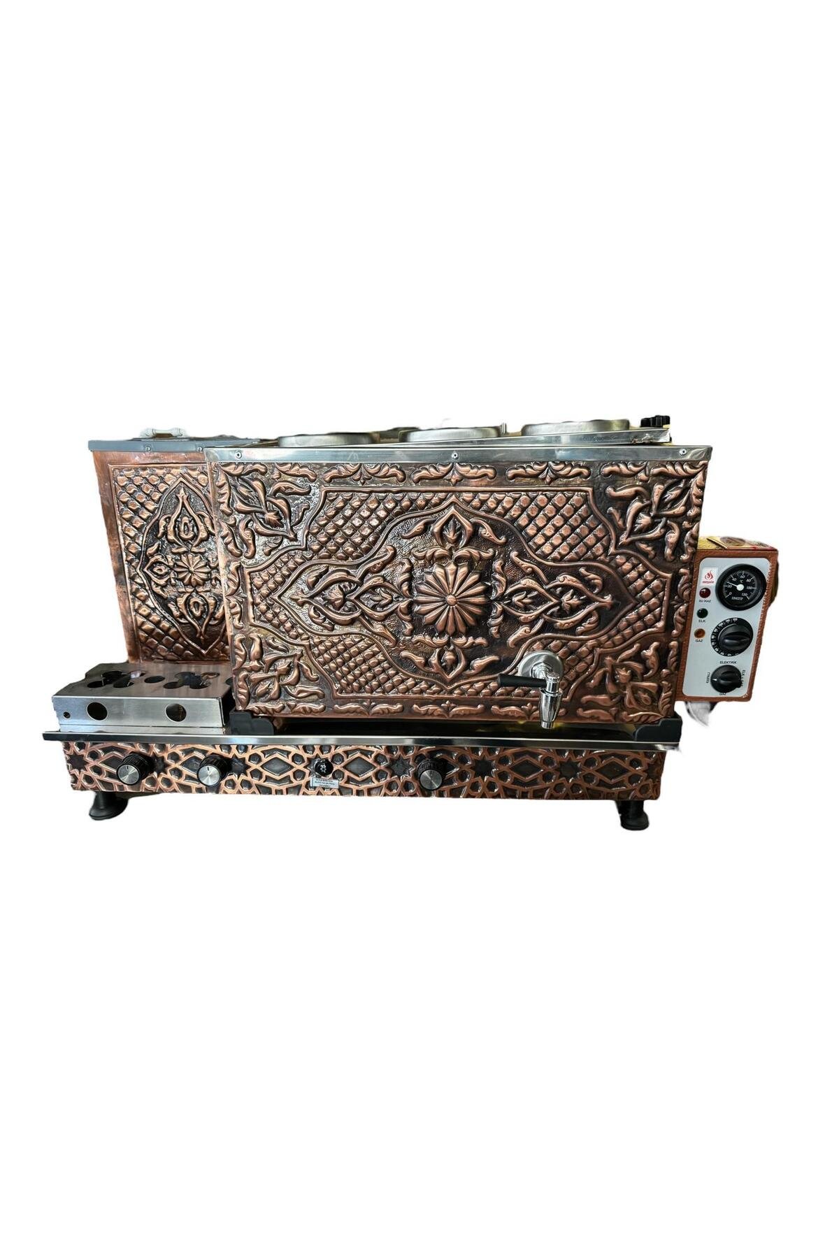 - Meşale 3 Demlikli Antik Bakır Full Otomatik Çay Kazanı Full Otomatik Çay Kazanı (Elektrik & Doğalgaz & Tüp) – İç Kazan 304L krom paslanmaz çelikten üretilmiştir.