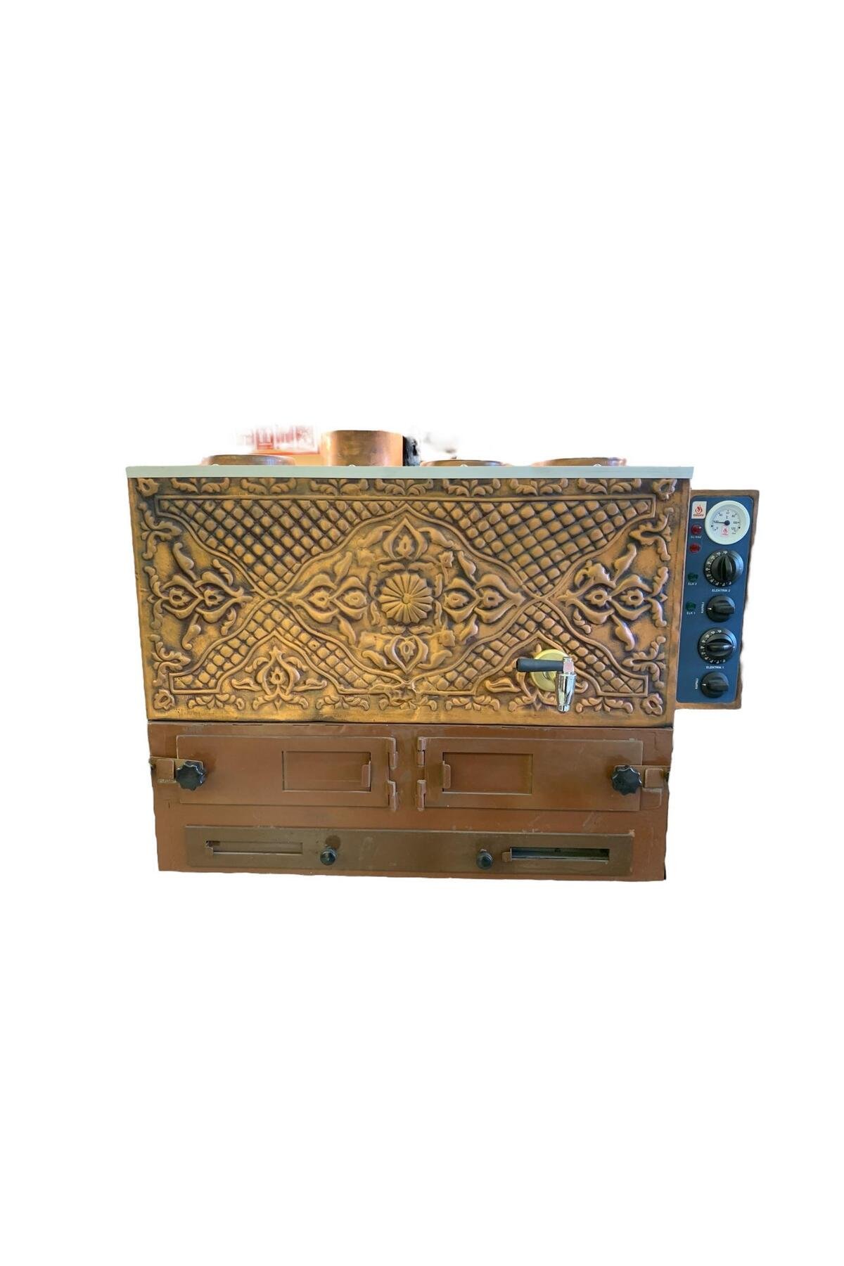 3 demlikli geniş kapasitesi, kahvehaneler, çay ocakları, restoranlar ve geleneksel çay sunumu yapan işletmeler için ideal bir kullanım sağlar. Bakırın doğal iletkenliği, hızlı ısınma ve düşük yakıt tüketimi sunarakekonomik bir kullanım avantajı yaratır.