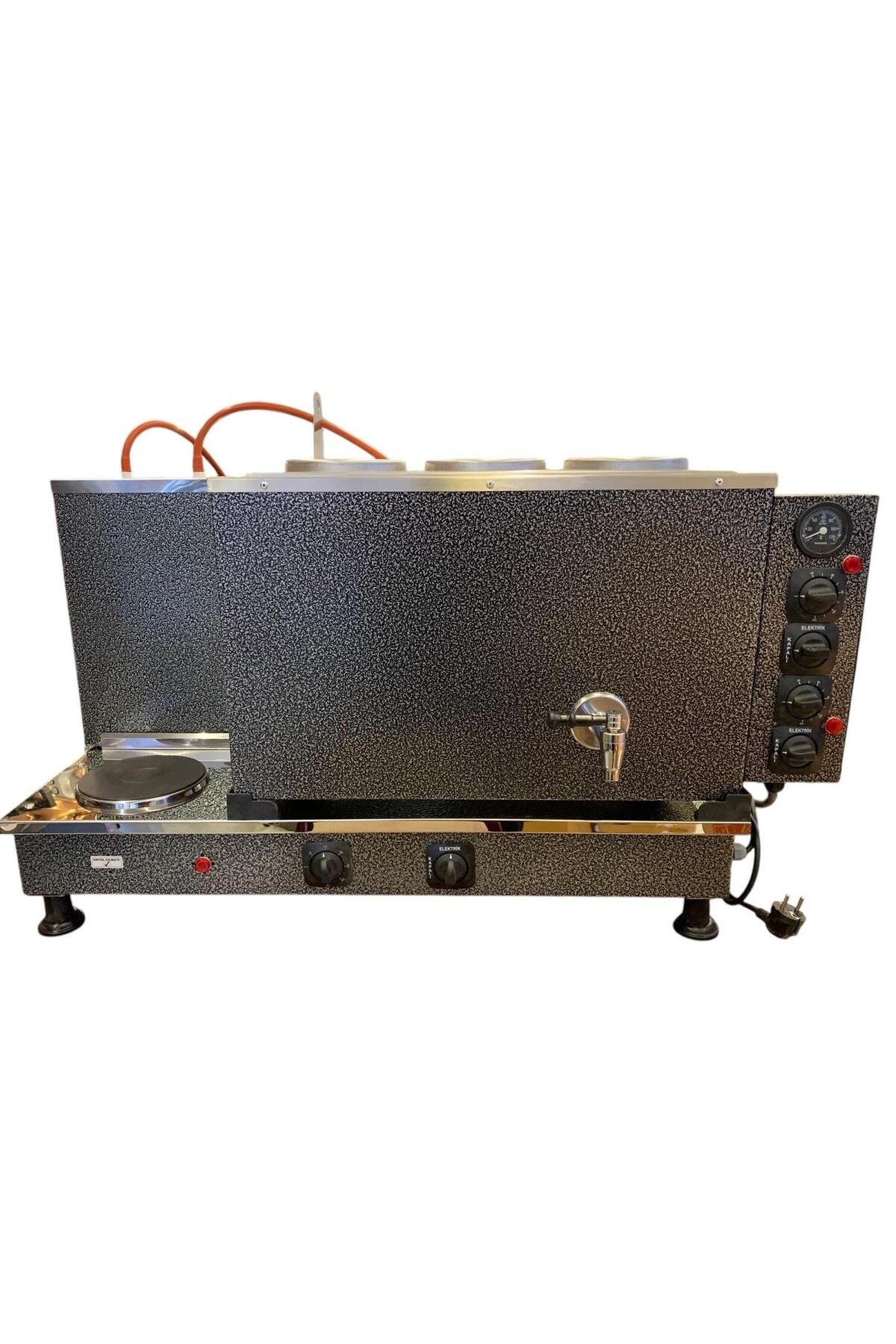 Demsu Plus 3 Demlikli Chromat Elektrikli Full Otomatik Çay Kazanı, 3 demlik kapasite ile yoğun kullanım alanları için ideal bir çözümdür. Yüksek performansı ve tam otomatik işleyişi ile hem hızlı çay demleme hem de mükemmel sonuçlar sunar. Elektrikli ısıtma özelliği sayesinde, enerji verimli bir şekilde sürekli taze çay sağlamak mümkündür.